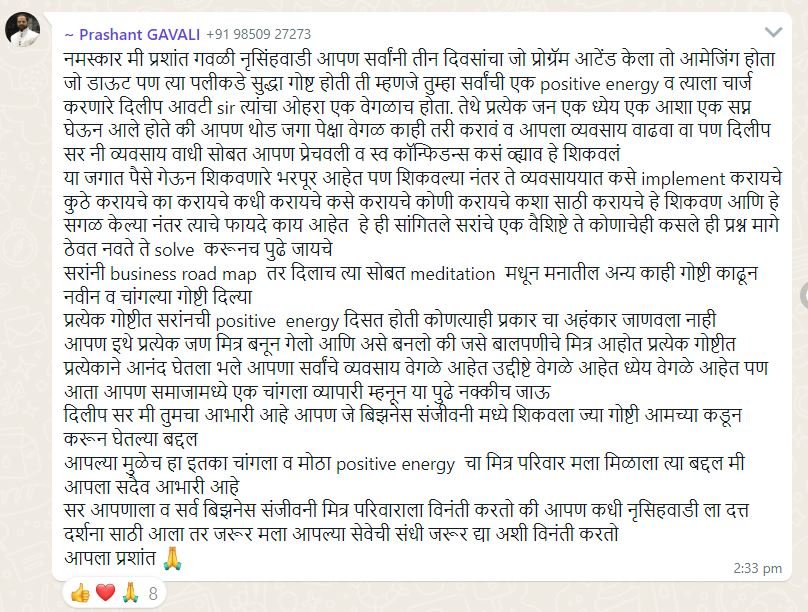 Thousands of entrepreneurs have already transformed their businesses with Dilip Auti’s frameworks.